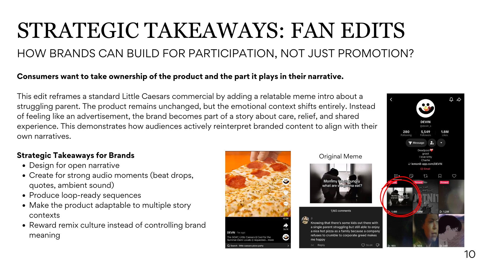 This project explores how brands can design content not just for visibility, but for reinterpretation. Through the study of fan edits and remix behavior, I identify strategic opportunities for brands to build cultural relevance through participation rather than control.