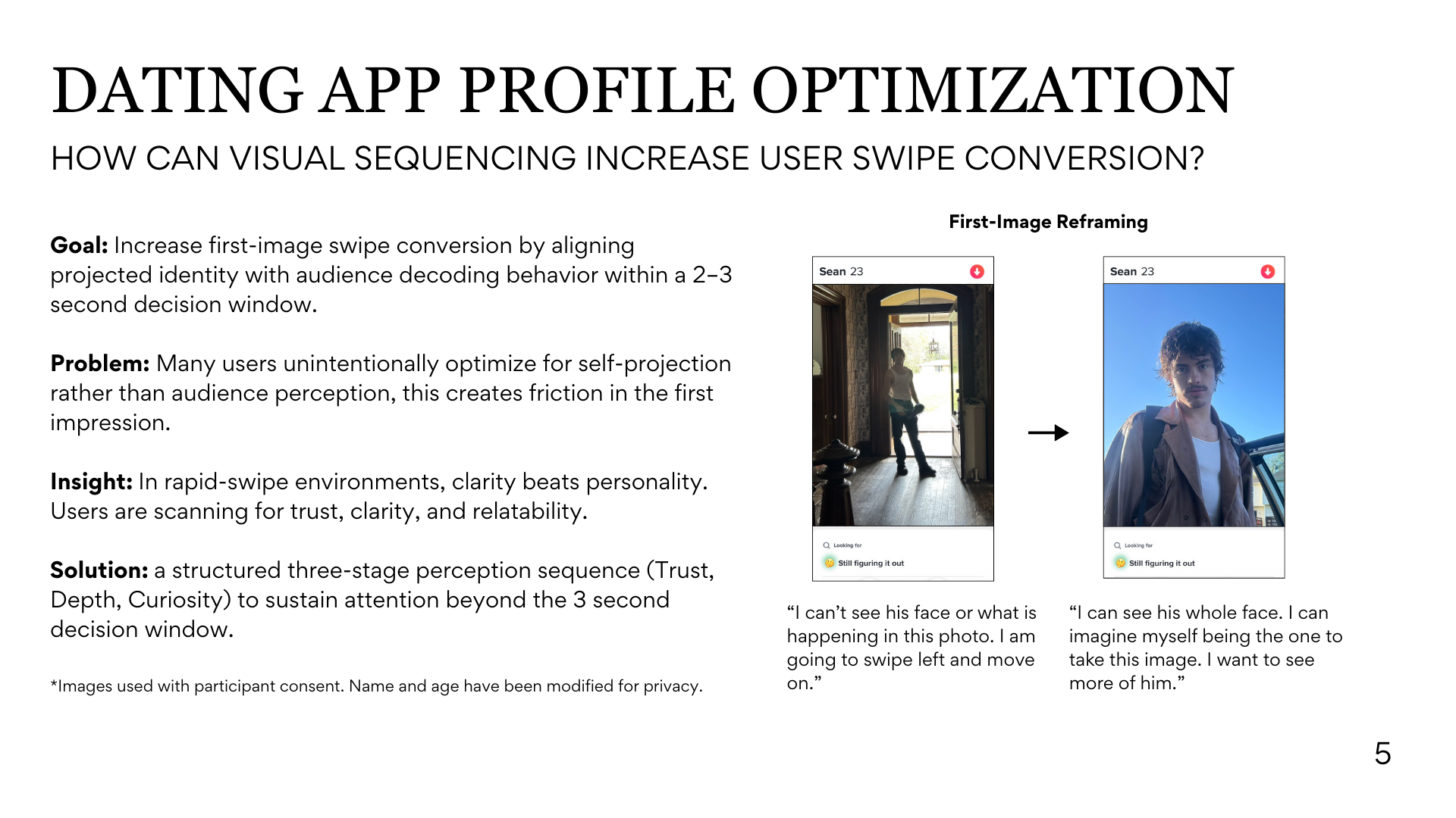 This project investigates how visual sequencing shapes perception and conversion, translating behavioral insight into a structured framework designed to reduce first-impression friction.